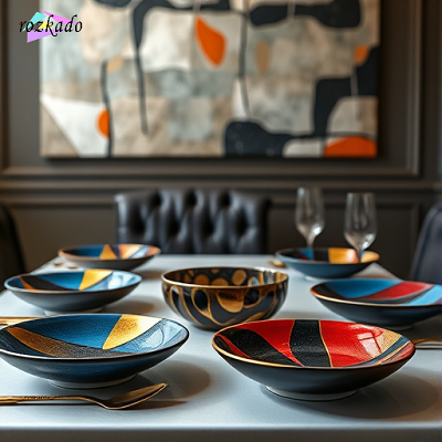 یکی از جالبترین ترندها در دنیای طراحی ظروف پذیرایی لوکس، استفاده از طرحهای هنری و انتزاعی است. طراحان با ترکیب رنگها، الگوها و فرمهای غیر متعارف، ظروفی میسازند که به نوعی اثر هنری محسوب میشوند. این نوع طراحیها میتوانند جلوهای خاص و مدرن به سفرهها و میزهای پذیرایی شما بدهند و تبدیل به مرکز توجه شوند.