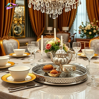 ظروف پذیرایی لوکس با طراحی زیبا و متریال باکیفیت، جلوهای خاص به چیدمان میز میبخشند. استفاده از بشقابهای سرامیکی طلایی، لیوانهای کریستالی و سینیهای نقرهای میتواند فضای پذیرایی را به سطحی بالاتر ببرد.