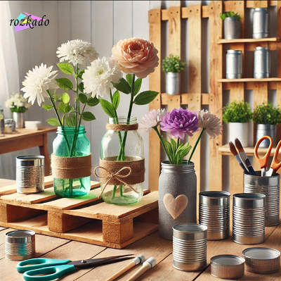 با استفاده از وسایل دورریختنی، نیازی به خرید مواد اولیه گران‌قیمت نخواهید داشت. بسیاری از وسایل خانه مانند بطری‌های پلاستیکی، کاغذهای باطله یا قوطی‌های فلزی می‌توانند به دکوری‌های جذاب تبدیل شوند.