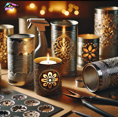 قوطی‌های فلزی کنسرو را تمیز کرده و با رنگ‌های متالیک یا برچسب‌های تزئینی پوشش دهید. با ایجاد سوراخ‌هایی کوچک در بدنه قوطی، می‌توانید طرح‌های زیبایی ایجاد کنید و آن را به یک جاشمعی شیک تبدیل کنید.