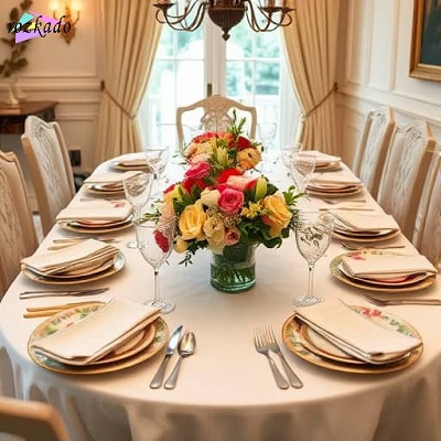 در کنار ست ظروف پذیرایی، از لوازم جانبی مثل دستمال سفره، رومیزی و گل‌آرایی مرتبط استفاده کنید تا جلوه‌ای هماهنگ‌تر ایجاد شود.