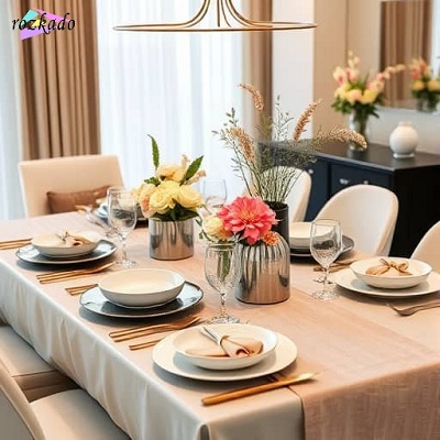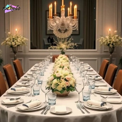 برای مهمانی شام رسمی، از ظروف ساده و کلاسیک استفاده کنید و با شمع‌های بلند یا گل‌آرایی شیک، فضا را کامل کنید.