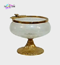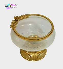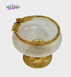 این آجیلخوری از شیشه با کیفیت و فلز مقاوم ساخته شد؛ آبکاری فورتیک روی فلز، درخشش طلایی و مقاومت در برابر لکه و خوردگی را تضمین میکند. طراحی عربی فرم جاممانند و پایهای محکم دارد که تعادل را برقرار میکند و جلوهی بصری ظرف را تقویت میکند. بافت شیشه، نور را بهشیوهای لطیف پراکنده میکند و محتویات داخل ظرف را برجسته نشان میدهد.