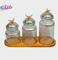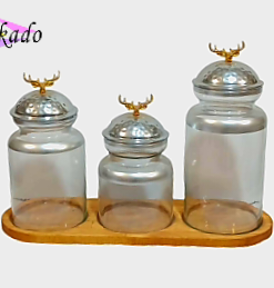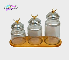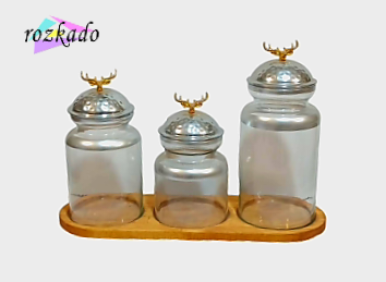 درب فلزی با آبکاری طلایی و طرح گوزن، اولین چیزی است که نگاه را جذب میکند. شفافیت شیشه و پایه چوبی مقاوم، ترکیبی گرم و دلنشین میسازد. فرم رولتی در طراحی این کندی باکسها باعث شده چیدمان آنها روی میز پذیرایی یا کانتر آشپزخانه جلوهای منظم و هنرمندانه پیدا کند.