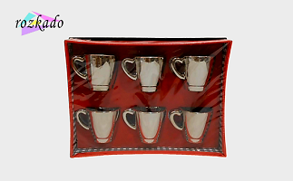 ست فنجان قهوه سرامیکی نقرهای رزکادو جلوهای شیک و کاربردی به میز سرو میآورد. این مجموعه شامل شش فنجان سرامیکی با لعاب نقرهای براق است که در یک جعبه کادویی زیبا قرار میگیرد؛ ترکیبِ ظاهر لوکس و بستهبندی حرفهای، این ست را به گزینهای ایدهآل برای هدیه یا تکمیل دکور تبدیل میکند.