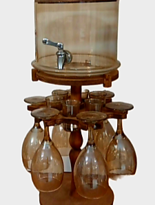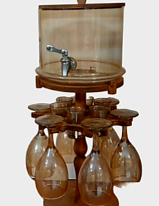 این کلمن از چوب مرغوب ساخته شده و روکشی با رنگ شامپاینی روی بخش شیشهای یا پلاستیکی کلمن وجود دارد که نمایی یکدست و جذاب ایجاد میکند. ساختار گردان باعث میشود میتوانید لیوانها را در طبقههای زیرین آویزان کنید و هنگام سرو نوشیدنی چرخش سریع و روان را تجربه کنید.