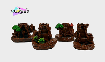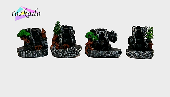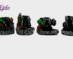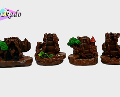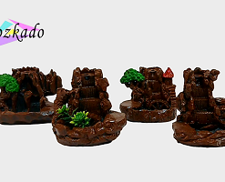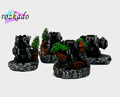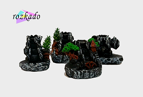 پلهها، درختچههای کوچک و مسیر دود با دقت طراحی شدهاند و وقتی مخروط بخور روشن میشود، دود مثل مه آرام روی صخره حرکت میکند و از پایین خارج میشود. این مدل برای بخور مخروطی است و در بالاترین بخش، جای مخصوص قرارگیری مخروط طراحی شده.