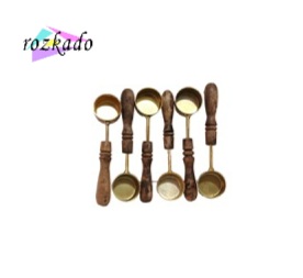 پیمانه قهوه مینی – اسکوپ چوبی و طلایی برای دوز دقیق و دمآوری حرفهای